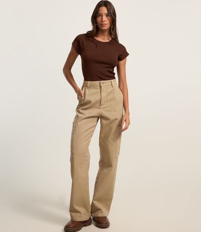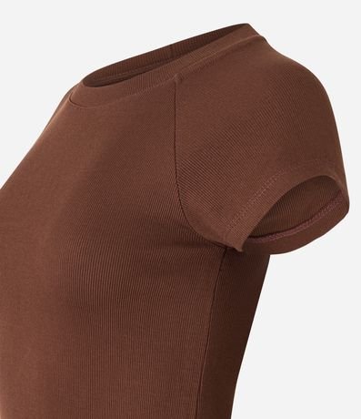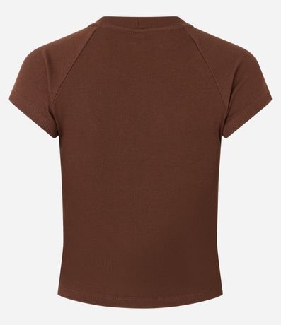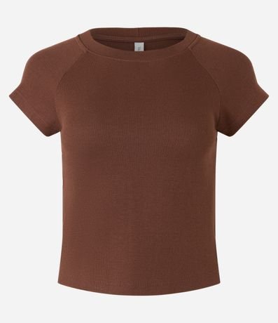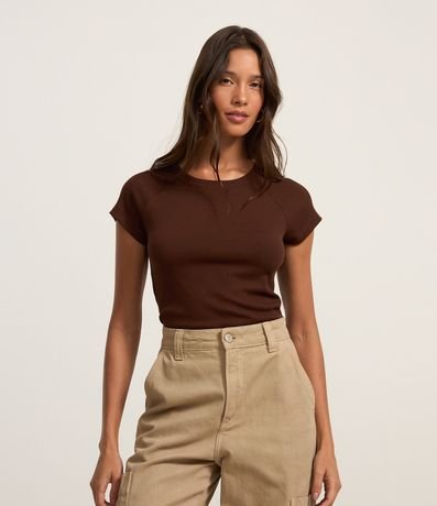Blusa básica, confeccionada em ribana, leve textura e com manga curta raglan.