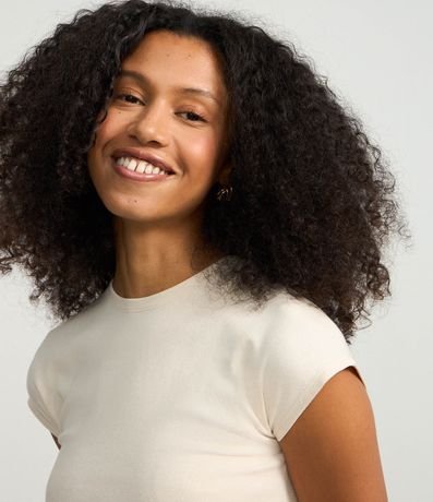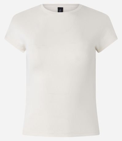 Ref: Blusa feminina confeccionada em ribana mais sustentável através de boas práticas ambientais, básica. Possui gola redonda, manga curta, ombro caído e sem estampa.