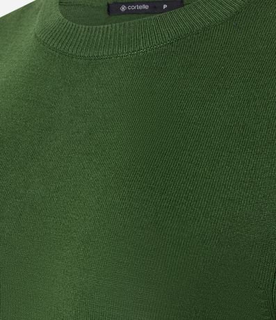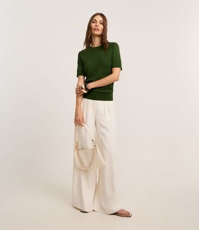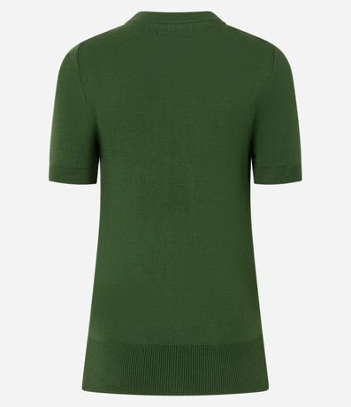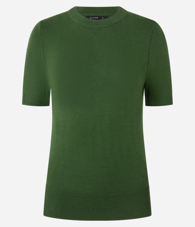 Ref: Blusa básica feminina confeccionada em tricô leve, com gola redonda e manga curta com punho na barra.