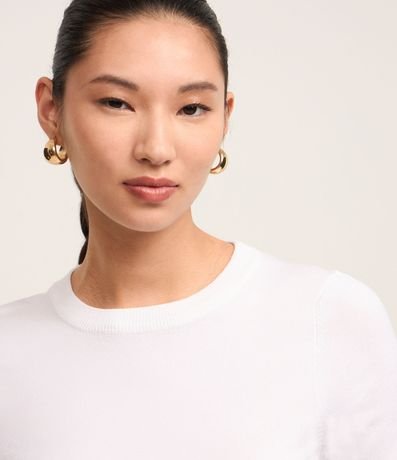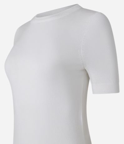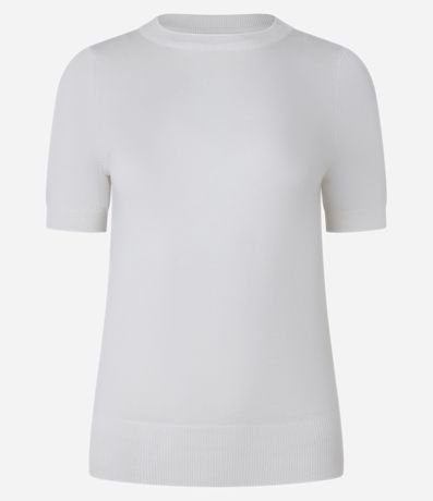 Ref: Blusa básica feminina confeccionada em tricô leve, com gola redonda e manga curta com punho na barra.
