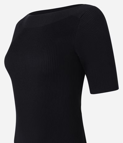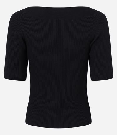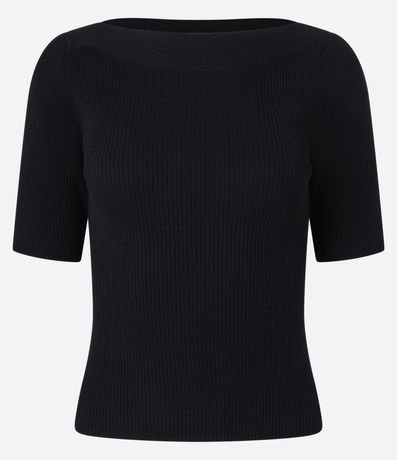 Blusa em tricô com gola canoa, manga curta e sem estampa.