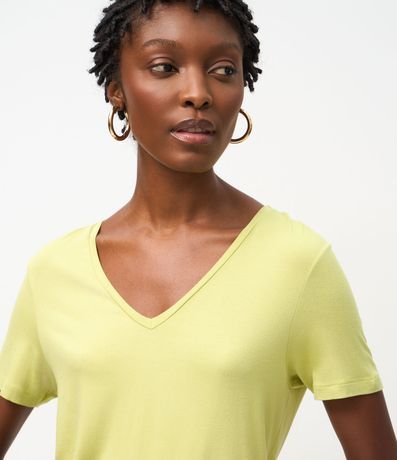 Ref: Blusa confeccionada em viscose, com mangas curtas e gola V. Peça sem estampa, curinga para montar diversos looks! Este produto possui viscose certificadoa em sua composição, além de ter sido produzido através de processos mais sustentáveis, sendo ambientalmente mais responsável.