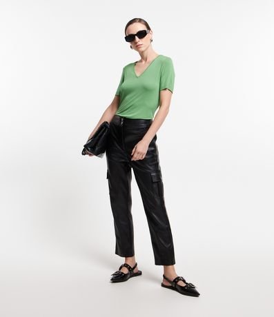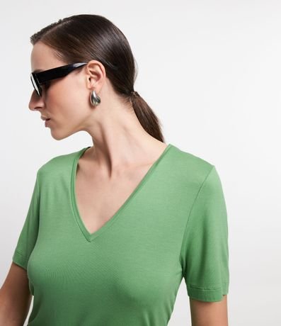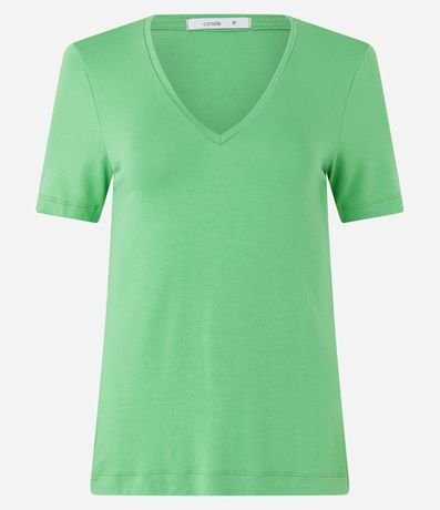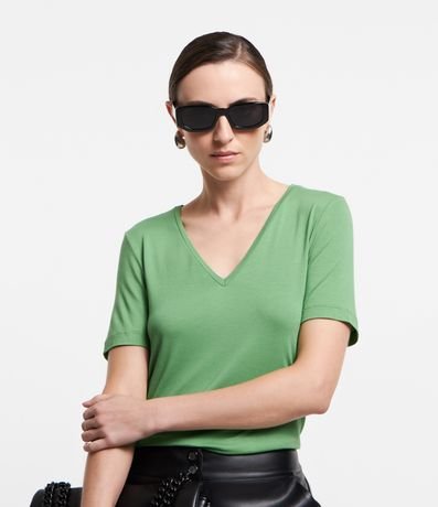 Ref: Blusa confeccionada em viscose, com mangas curtas e gola V. Peça sem estampa, curinga para montar diversos looks! Este produto possui viscose certificadoa em sua composição, além de ter sido produzido através de processos mais sustentáveis, sendo ambientalmente mais responsável.