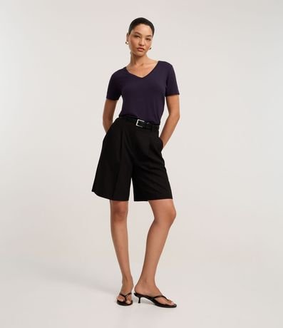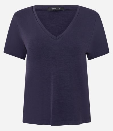 Ref: Blusa t-shirt básica confeccionada em viscose, com decote V e mangas curtas.