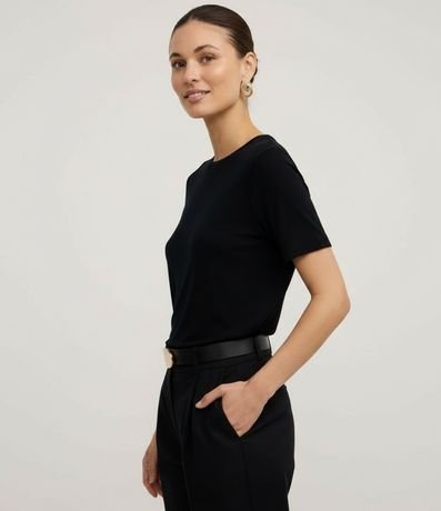 Ref: Blusa básica feminina, de modelo t-shirt, confeccionada em viscose, com gola redonda e mangas curtas.