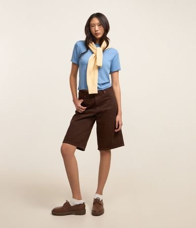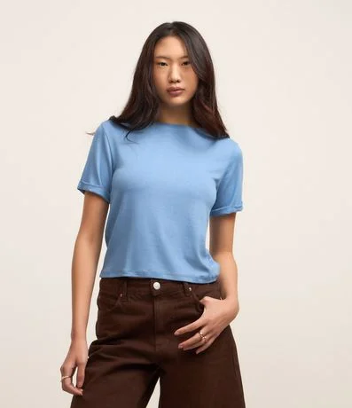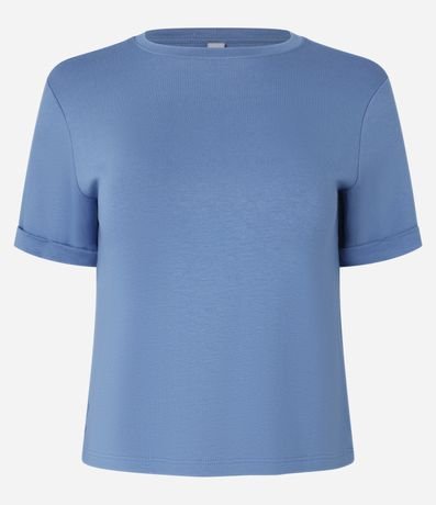 Blusa em viscose, sem estampa, com manga curta com detalhe dobradinho. Básica, sem perder em estilo, a peça é uma opção confortável e versátil para compor looks casuais.