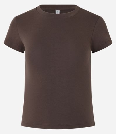 Blusa feminina confeccionada em malha ribana de algodão, com gola redonda e mangas curtas. Básica e sem estampa, a peça possui como diferenciais o corte mais ajustado ao corpo e também o comprimento alongado.