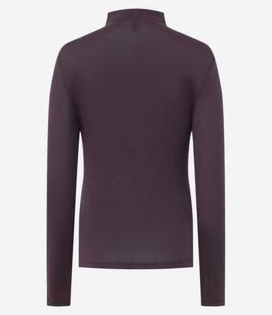 Blusa básica feminina confeccionada em modal. Possui comprimento regular, golinha alta e mangas longas.