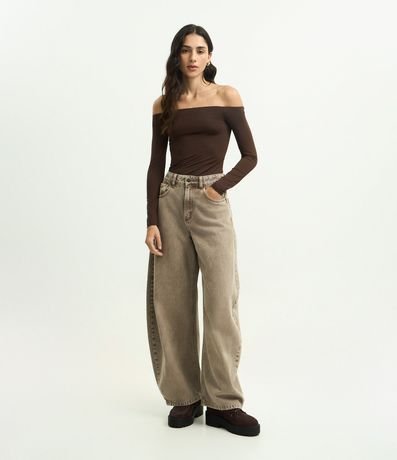 Ref: Blusa básica feminina confeccionada em microfibra, no modelo ombro a ombro, com manga longa e sem estampa.