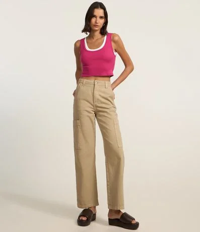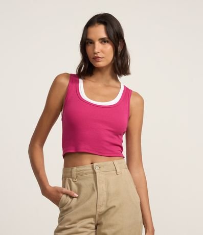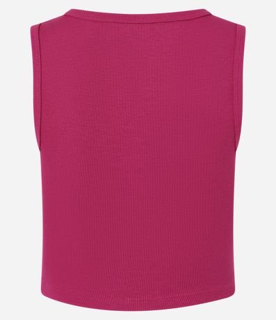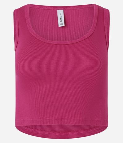 Blusa básica feminina de corte soltinho, confeccionada em ribana de viscose, com gola redonda e sem mangas. Sem estampa, possui textura caneladinha e comprimento mais encurtado.
