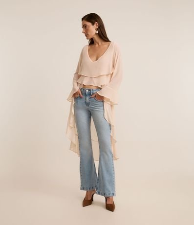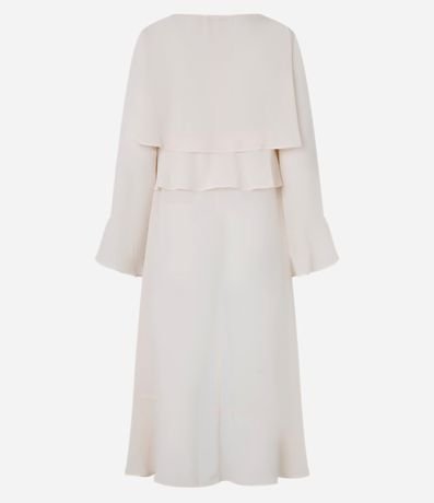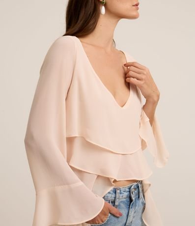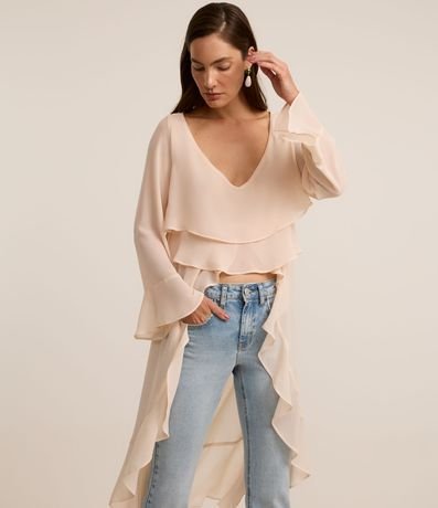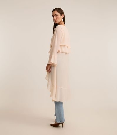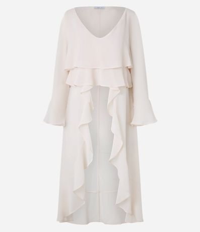 Ref: Bata alongada com manga longa, confeccionada em chiffon, soltinha com babados e produzida através de boas práticas ambientais.