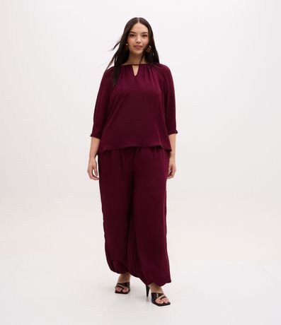 Blusa Bata em Crepe com Manga 3/4 e Franzidos Curve & Plus Size