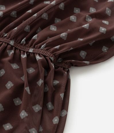 Bata plus size confeccionada em tule com forro, decote v, amarração nas mangas e franzido na cintura.
