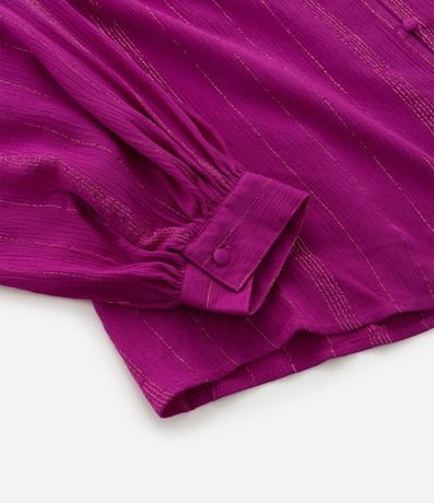 Ref: Blusa ampla confeccionada em viscose certificada com detalhe de fio metalizado. A peça te mangas longas, botões frontais e nos punhos e amarração na gola.