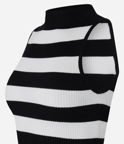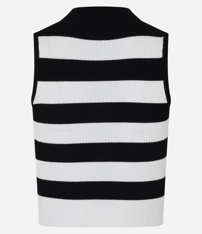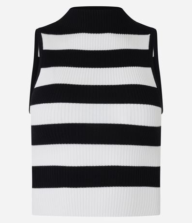 Ref: Blusa sem mangas, confeccionada em tricô com caimento leve, com golinha alta e listras horizontais em blocos de cores bicolores. A peça conta com malha de textura canelada. Este produto possui viscose certificada em sua composição, sendo ambientalmente mais responsável.