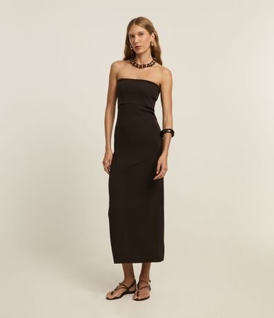 Ref: Blusa sem alças, confeccionado em tricô com caimento leve, com decote reto com dobra e barra assimétrica. Peça incorporada na tendência Boho. Este produto possui viscose certificada em sua composição, sendo ambientalmente mais responsável.
