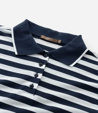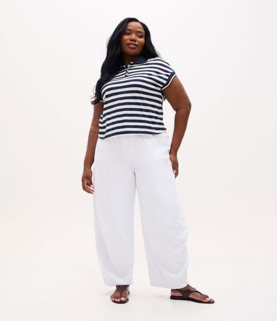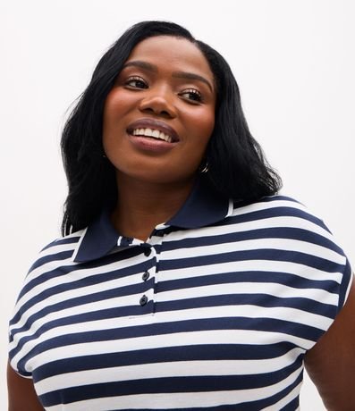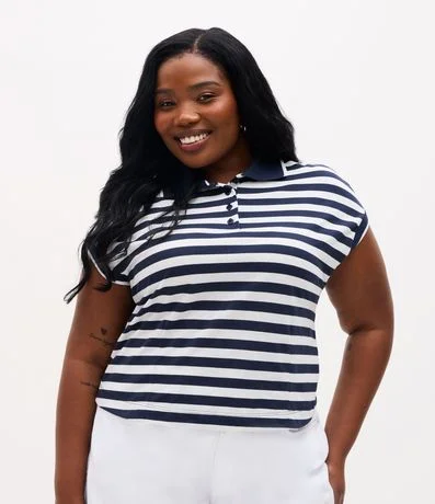 Blusa Boxy em Malha Piquet Listrada e com Gola Polo Curve & Plus Size
