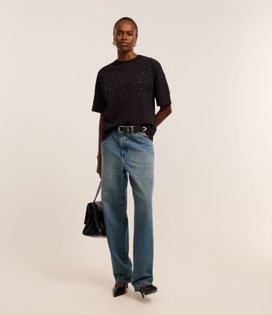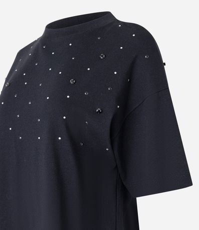 Blusa Boxy Oversized em Algodão com Pedrarias de Strass