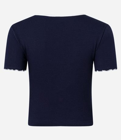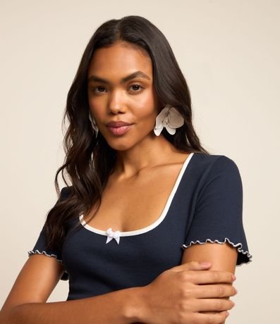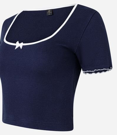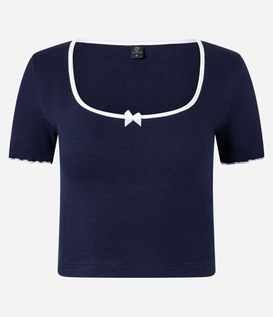 Blusa Canelada em Algodão com Lacinho e Contrastes