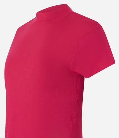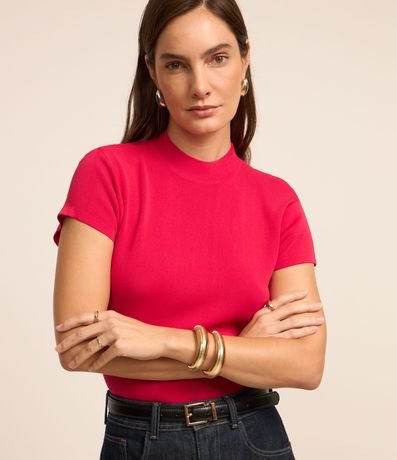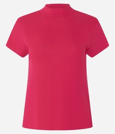 Blusa em ribana com golinha alta, manga curta e malha texturizada