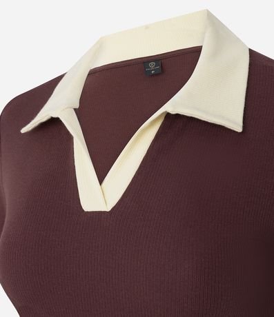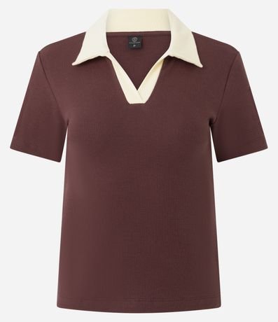 Blusa Canelada em Ribana com Gola Polo Contrastante