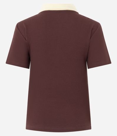 Blusa de gola polo contrastante, confeccionada em ribana, com mangas curtas e textura canelada. Este produto possui algodão certificado BCI em sua composição, além de ter sido produzido através de processos mais sustentáveis com boas práticas ambientais, sendo ambientalmente mais responsável.