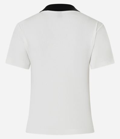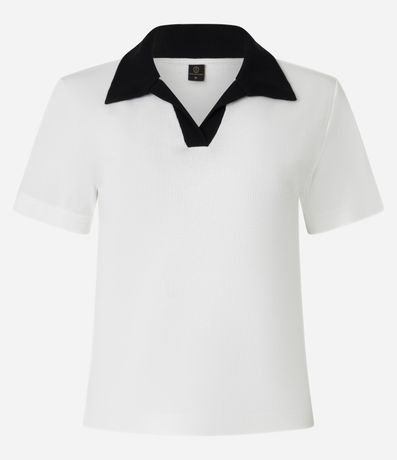 Blusa de gola polo contrastante, confeccionada em ribana, com mangas curtas e textura canelada. Este produto possui algodão certificado BCI em sua composição, além de ter sido produzido através de processos mais sustentáveis com boas práticas ambientais, sendo ambientalmente mais responsável.