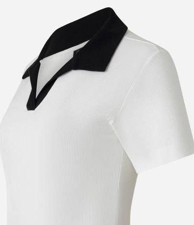 Blusa Canelada em Ribana com Gola Polo Contrastante