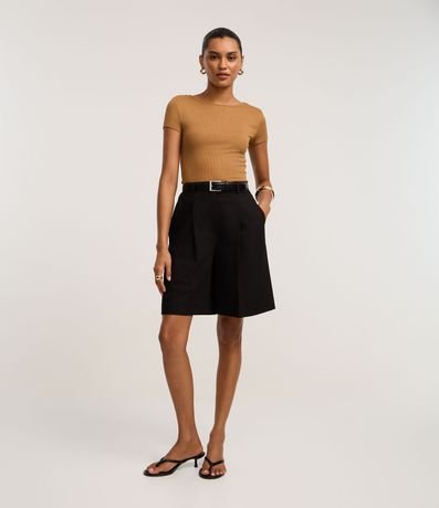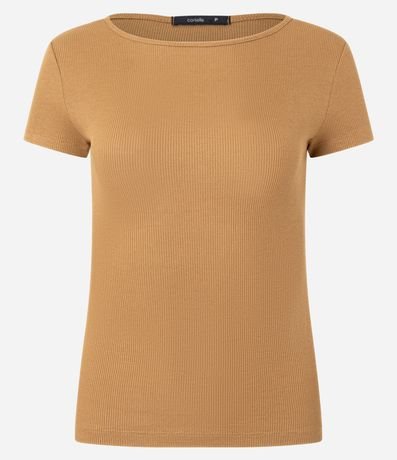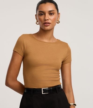 Ref: Blusa canelada de mangas curtas, confeccionada em ribana, com gola redonda. Este produto possui viscose certificada em sua composição, além de ter sido produzido através de processos mais sustentáveis, sendo ambientalmente mais responsável.
