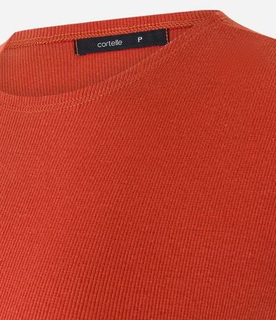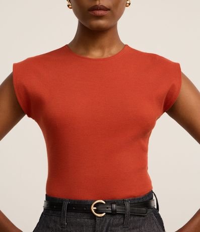 Blusa feminina confeccionada em malha de ribana de algodão, com gola redonda e mangas curtas sem cava. Conta com textura canelada.