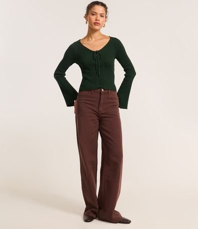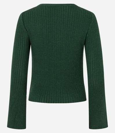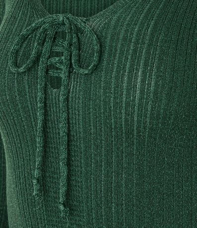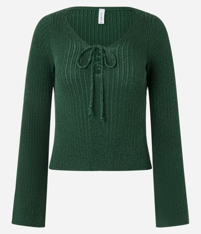 Blusa Canelada em Tricô com Amarração e Punho Amplo