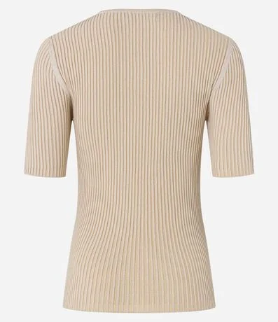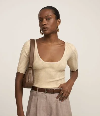 Blusa manga curta confeccionada em tricô de viscose mais sustentável com decote U textura canelada.