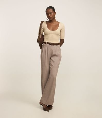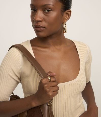 Blusa Canelada em Tricô com Decote U