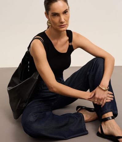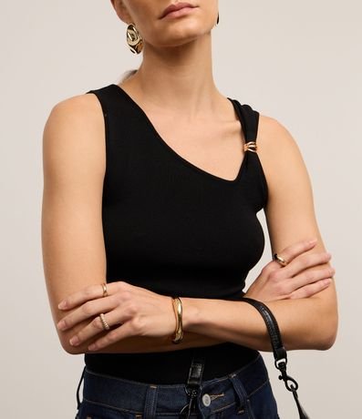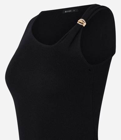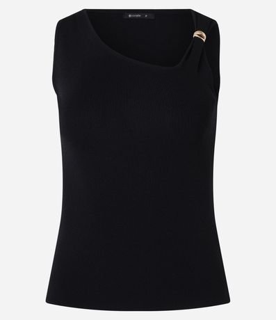Ref: Blusa sem mangas, confeccionada em tricô com caimento leve, com gola redonda e detalhe metalizado em uma das alças. A peça conta com malha em textura toda canelada. Este produto possui viscose certificada em sua composição, sendo ambientalmente mais responsável.