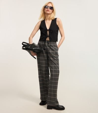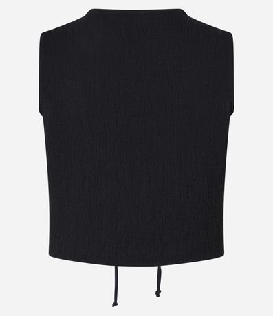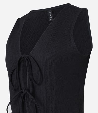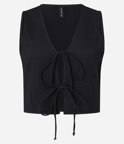 Ref: Blusa colete com decote v, abertura frontal e duas amarrações com lacinhos.