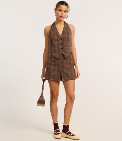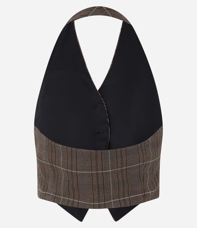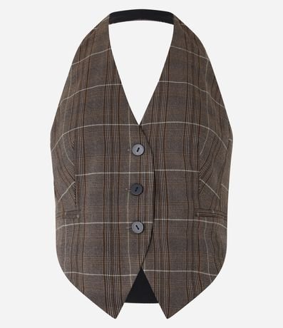 Blusa Colete em Alfaiataria Xadrez Frente Única