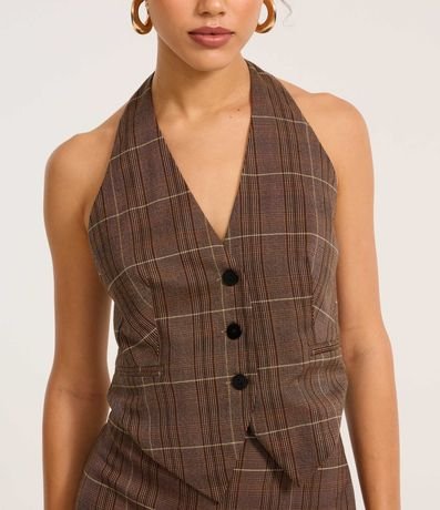 Blusa colete, frente única com decote v, botões frontais, alfaiataria xadrez.