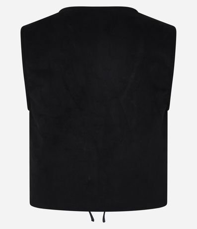 Ref: Blusa feminina, confeccionada em suede, sem mangas, com amarrações na parte frontal. A peça possui modelagem que se assemelha a um colete.