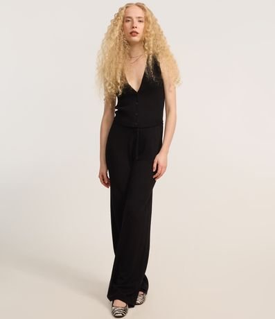 Blusa colete confeccionada em tricô com viscose certificada mais sustentável, abotoamento frontal e sem estampa.