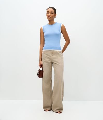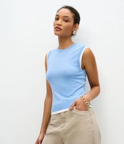 Blusa Colete em Tricô com Viés Contrastantes
