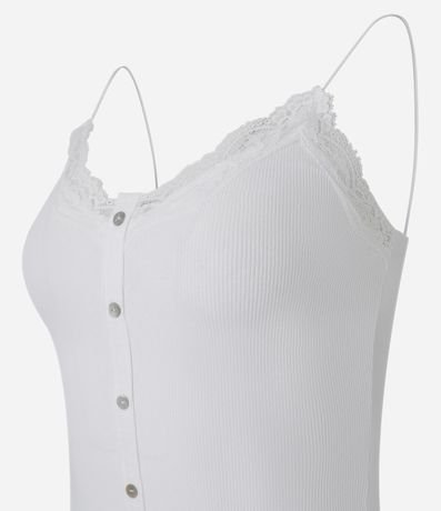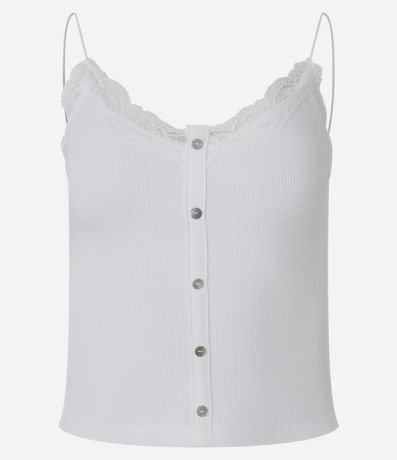 Blusa de alcinha com detalhe em renda no decote, confeccionada em ribana e botões frontais.