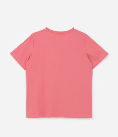 Blusa feminina Curve & Plus Size confeccionada em algodão certificado bci com boas práticas ambientais, peça com gola redonda e aplicação de pérolas artificiais e strass dando um charme de colar para o produto, mangas curtas.