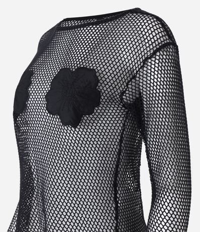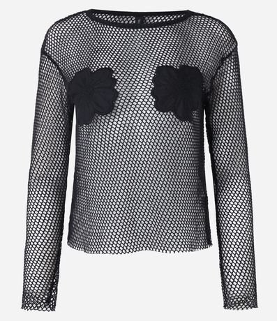 Blusa manga longa confeccionada em algodão bci mais sustentável, produzida em boas práticas ambientais, bordado floral no peito e textura quadriculada.