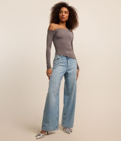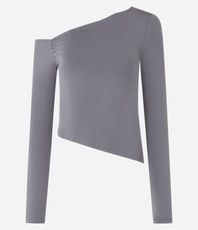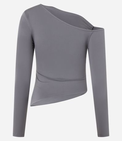 Ref: Blusa feminina em microfibra com decote assimétrico drapeado na cava, manga longa e bassa assimétrica.