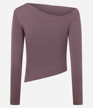 Blusa com Decote Assimétrico Detalhe Drapeado na Cava e Manga Longa