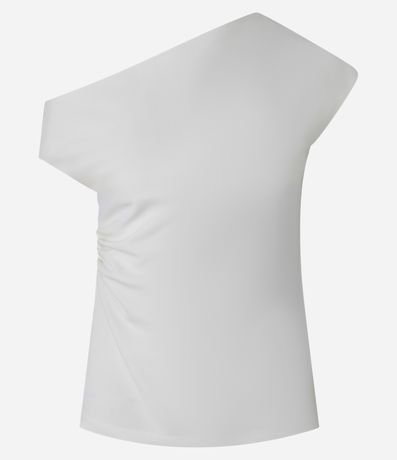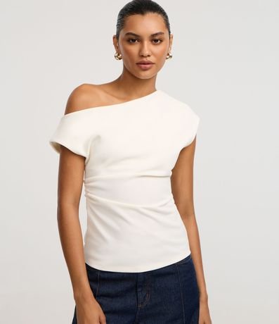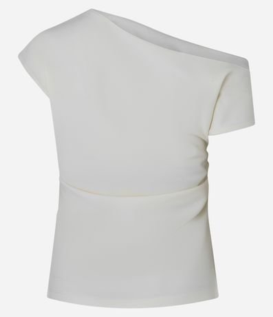 Ref: Blusa feminina confeccionada em crepe com decote assimétrico, manga curta e drapeado lateral.