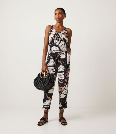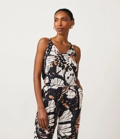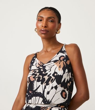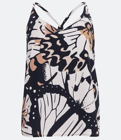Ref: A blusa com alças finas é ideal para compor looks confortáveis e casuais. Nesta versão, com linda estampa de borboletas grandes, ela é perfeita para combinar com jeans e arrasar.