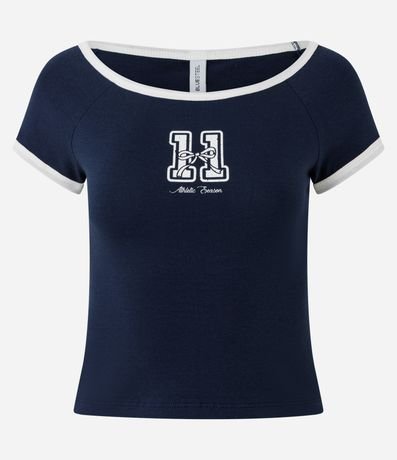 Ref: Blusa manga curta em algodão com modelagem ajustada e decote amplo arredondado. Possui estampa numeral localizada no peitoral, trazendo inspiração esportiva ao visual. Detalhes contrastantes nas barras complementam o estilo, confeccionado em algodão de certificado BCI para melhores práticas ambientais.