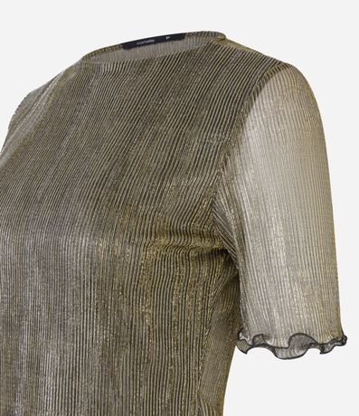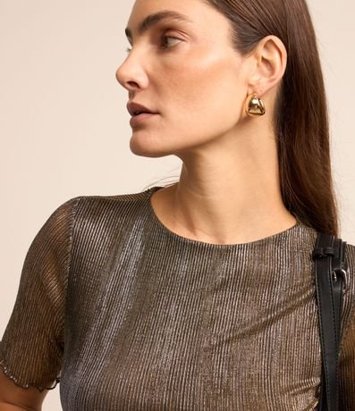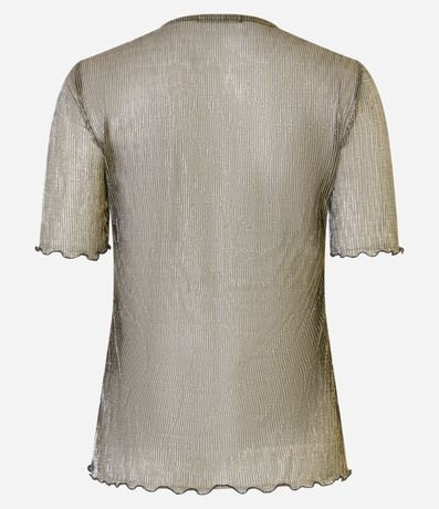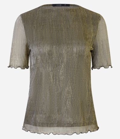 Ref: Blusa de mangas curtas com fios metalizados, frufrus nas mangas e na barra além de textura listrada.