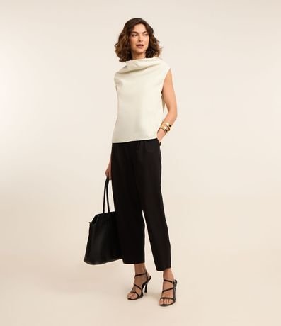 Ref: Blusa sem manda com gola alta ampla. Neutra, é uma peça chave e elegante para o look.